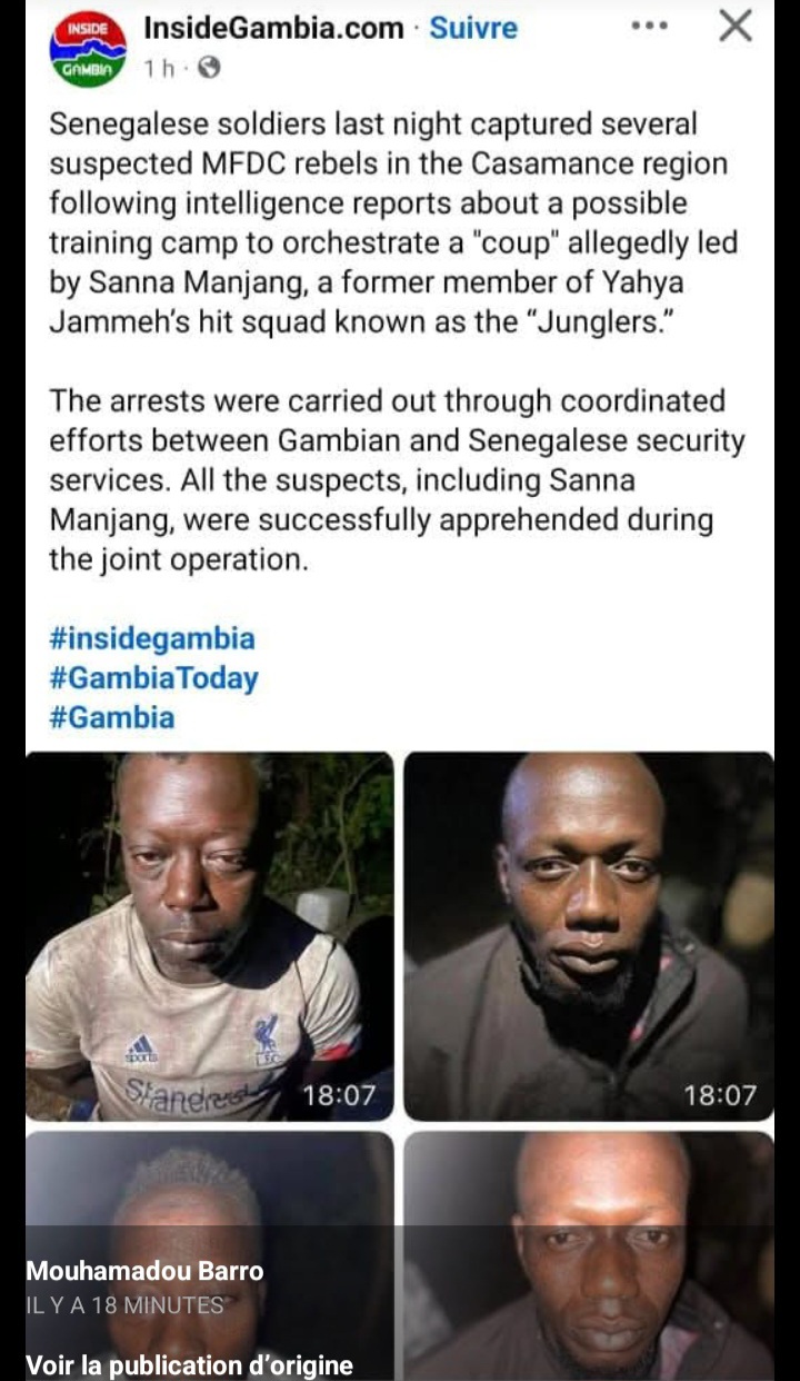 Sanna MANJANG serait arrêté avec d’autres éléments d’anciens junglers et des éléments du MFDC dans une zone qui demeure encore un espace de prédilection de Salif Sadio, depuis quelques années et surtout après avoir quitté ses bases démentellées de la frontière avec la Guinée Bissau.